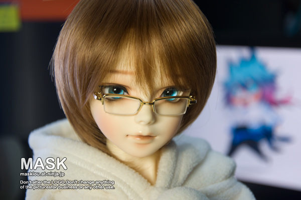 眼鏡要圓框,但好看的很難找,乾脆就上面那樣,金邊方框算了。(金色搭這個毛最好看)